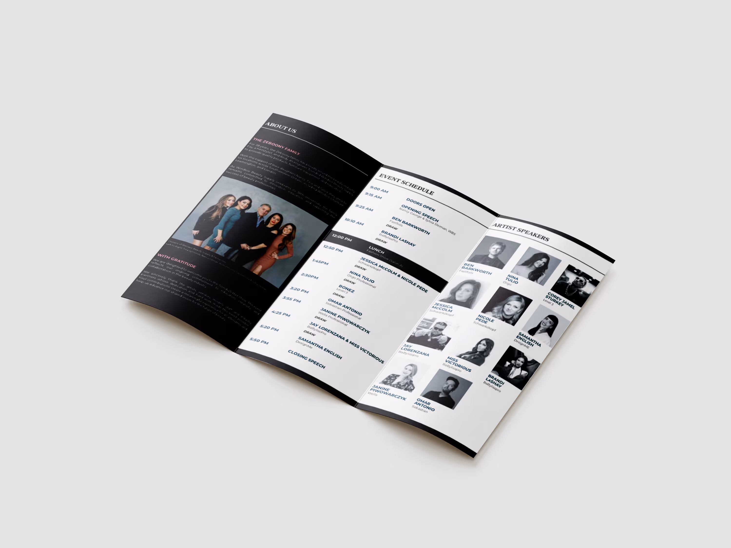 The event program served as both a schedule and a curated showcase guide for guests, reinforcing professionalism, clarity, and a polished brand experience.